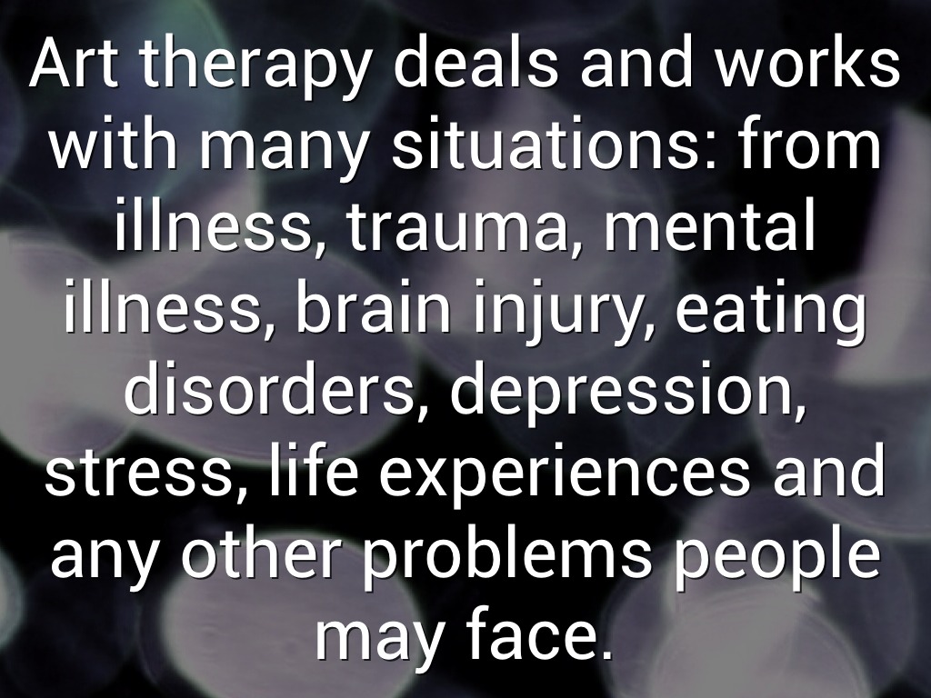 Art therapy deals and works with many situations: from illness, trauma, mental illness, brain injury, eating disorders, depression, stress, life experiences and any other problems people may face.