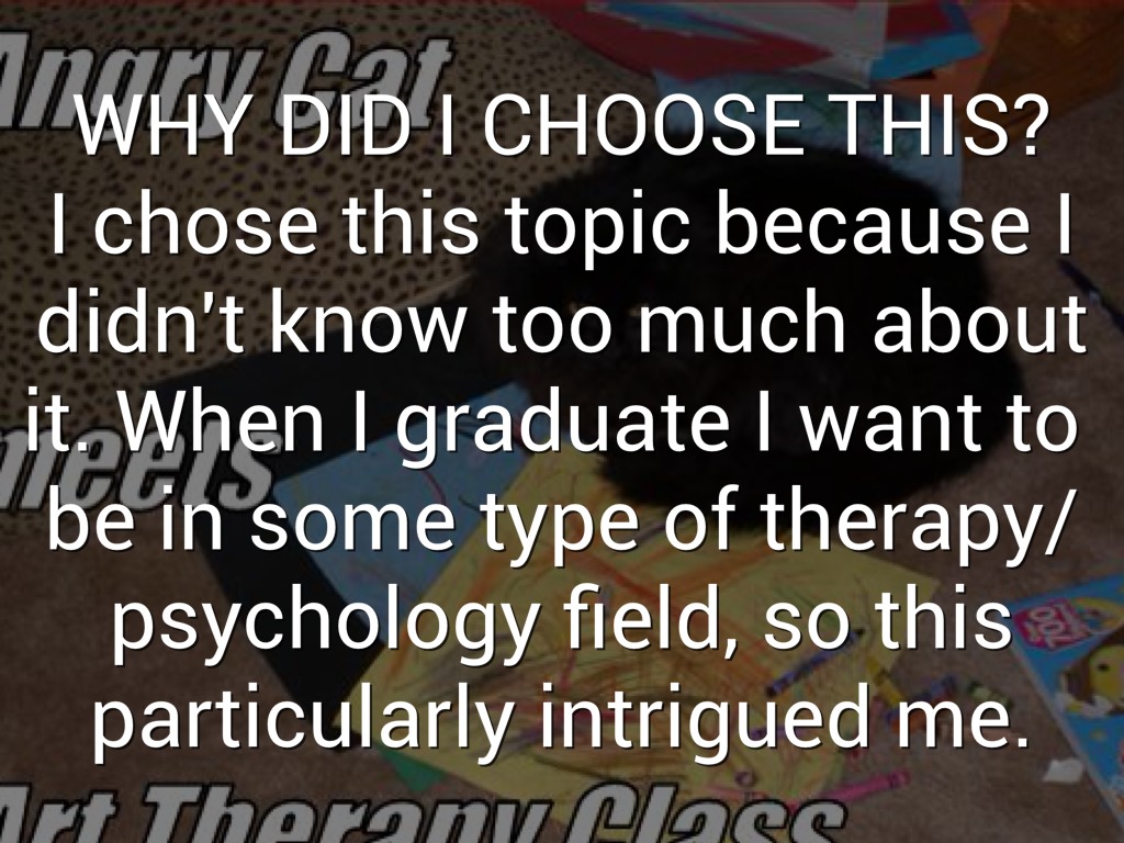 I chose this topic because I didn't know too much about it. When I graduate I want to be in some type of therapy/psychology field, so this particularly intrigued me.
