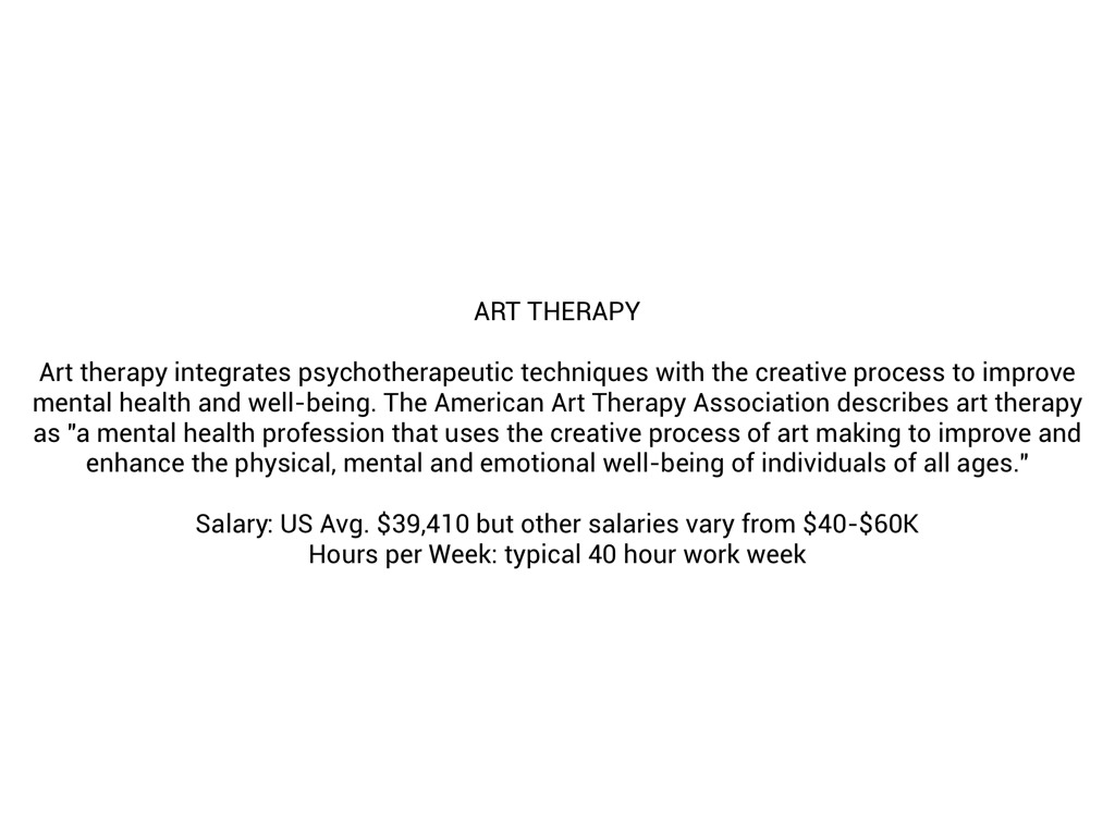 - You will have to do some investigation to check the career health of art therapy for your location.
