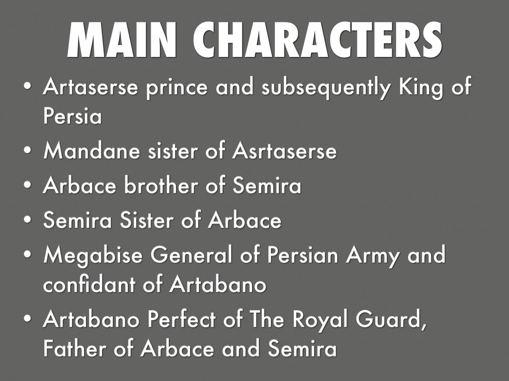 Artabano Perfect of The Royal Guard, Father of Arbace and Semira