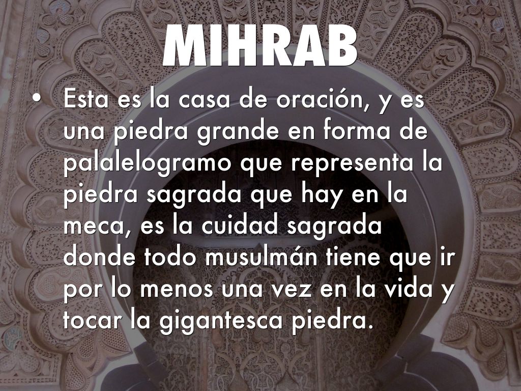Esta es la casa de oración, y es una piedra grande en forma de palalelogramo que representa la piedra sagrada que hay en la meca, es la cuidad sagrada donde todo musulmán tiene que ir por lo menos una vez en la vida y tocar la gigantesca piedra.