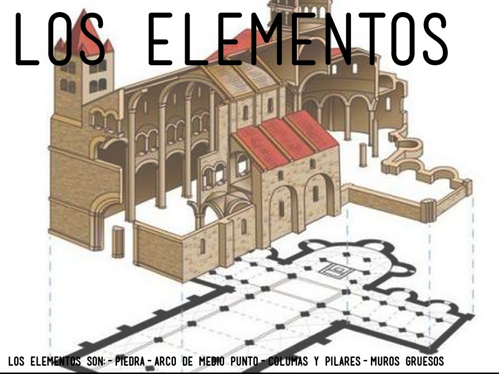 los elementos son:-piedra-arco de medio punto-columas y pilares-muros gruesos