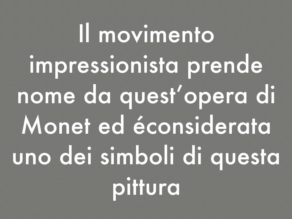 Il movimento impressionista prende nome da quest’opera di Monet ed éconsiderata uno dei simboli di questa pittura