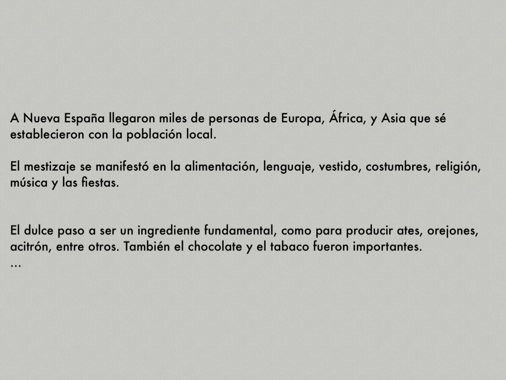 A Nueva España llegaron miles de personas de Europa, África, y Asia que sé establecieron con la población local.