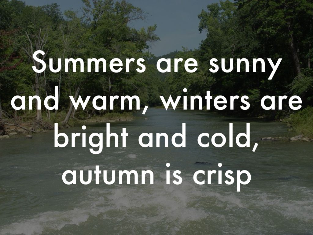 Summers are sunny and warm, winters are bright and cold, autumn is crisp