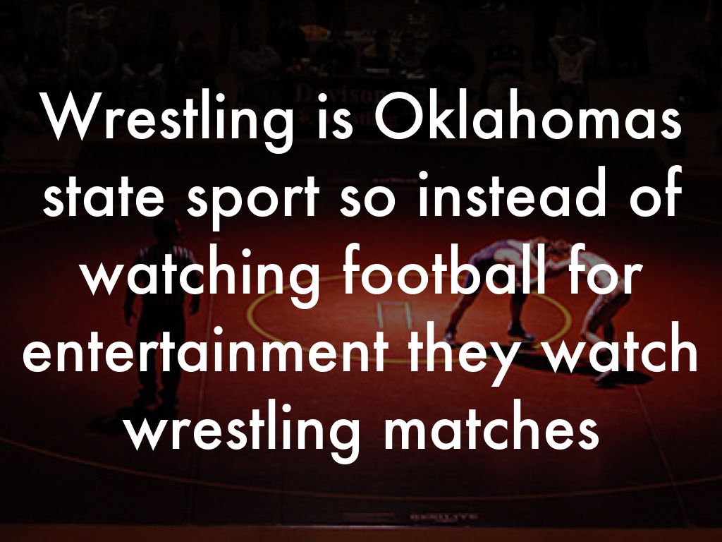 Wrestling is Oklahomas state sport so instead of watching football for entertainment they watch wrestling matches