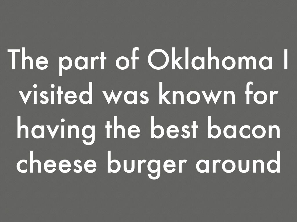 The part of Oklahoma I visited was known for having the best bacon cheese burger around