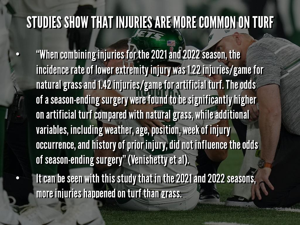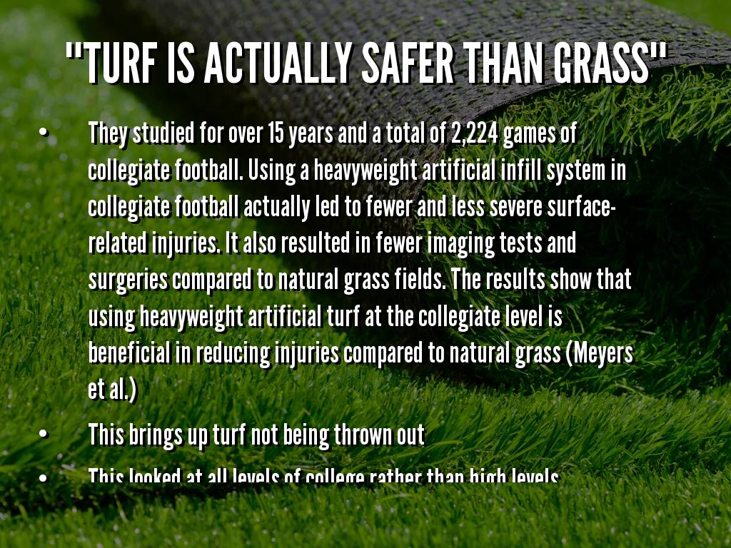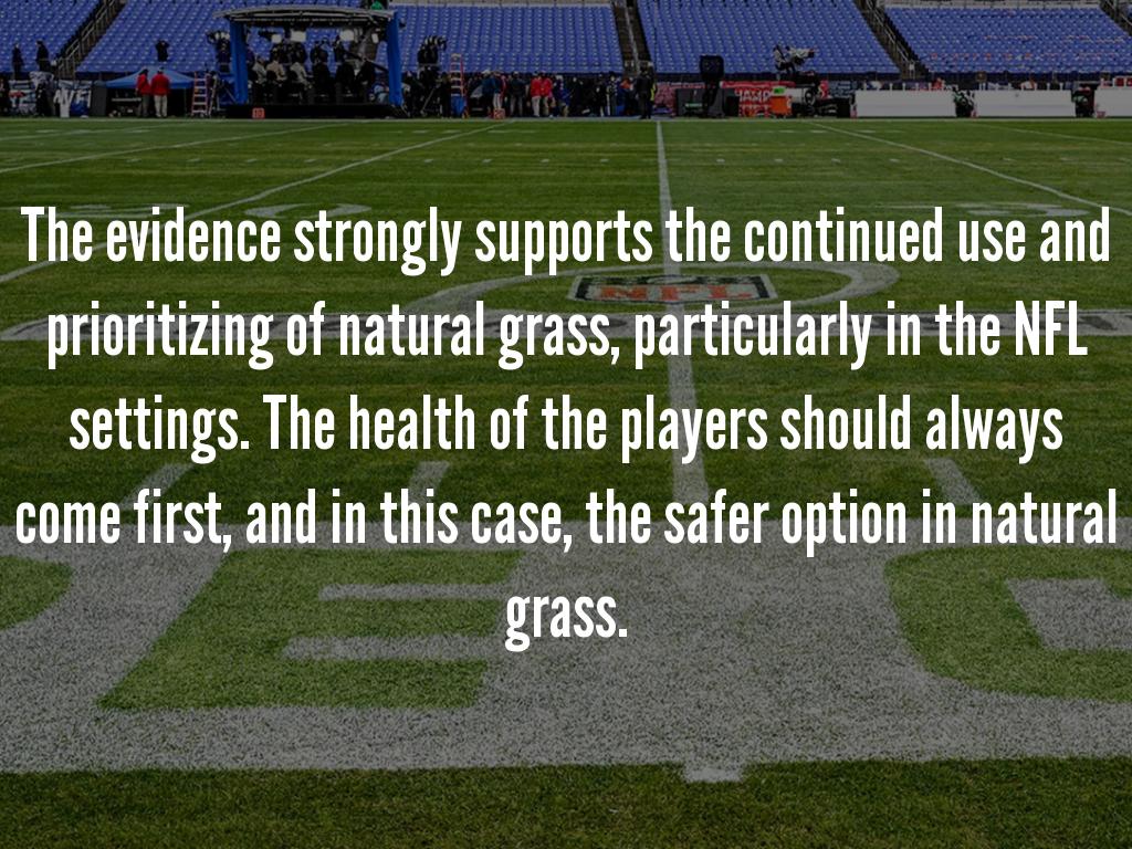 The evidence strongly supports the continued use and prioritizing of natural grass, particularly in the NFL settings. The health of the players should always come first, and in this case, the safer option in natural grass.