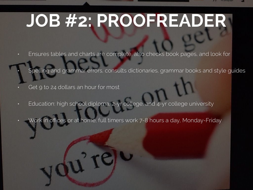 - Checks for errors, talks to clients, determines size, placements, and look of text