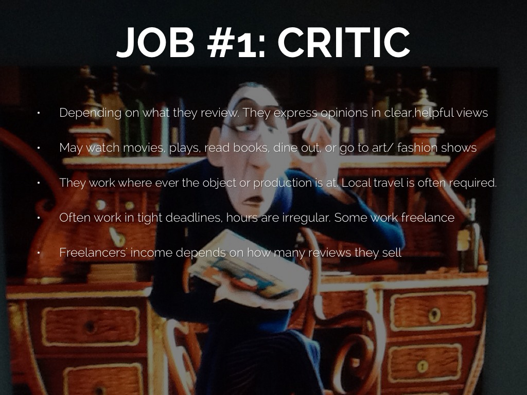 - Often work in tight deadlines, hours are irregular. Some work freelance