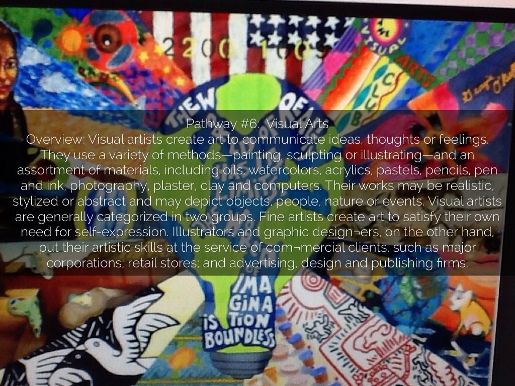 Overview: Visual artists create art to communicate ideas, thoughts or feelings. They use a variety of methods—painting, sculpting or illustrating—and an assortment of materials, including oils, watercolors, acrylics, pastels, pencils, pen and ink, photography, plaster, clay and computers. Their works may be realistic, stylized or abstract and may depict objects, people, nature or events. Visual artists are generally categorized in two groups. Fine artists create art to satisfy their own need for self-expression. Illustrators and graphic design¬ers, on the other hand, put their artistic skills at the service of com¬mercial clients, such as major corporations; retail stores; and advertising, design and publishing firms.