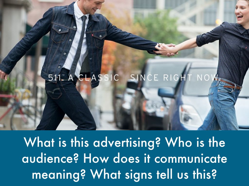 What is this advertising? Who is the audience? How does it communicate meaning? What signs tell us this?
