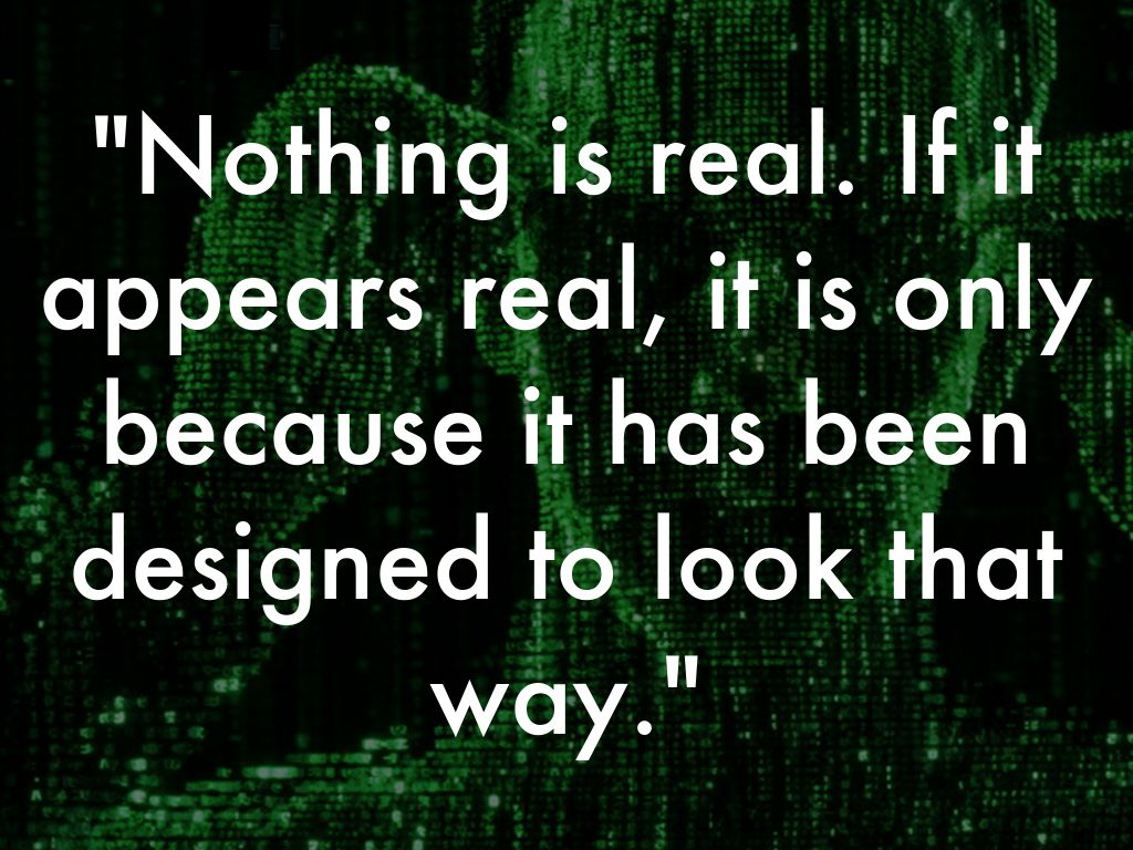 "Nothing is real. If it appears real, it is only because it has been designed to look that way."