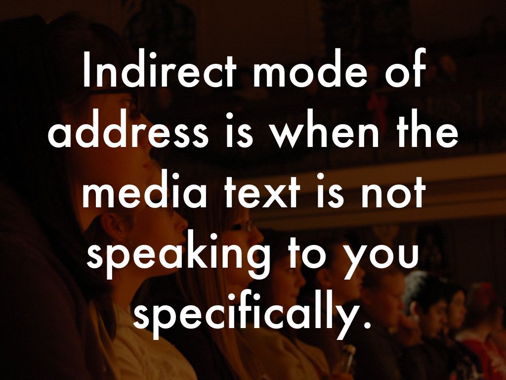 Indirect mode of address is when the media text is not speaking to you specifically.