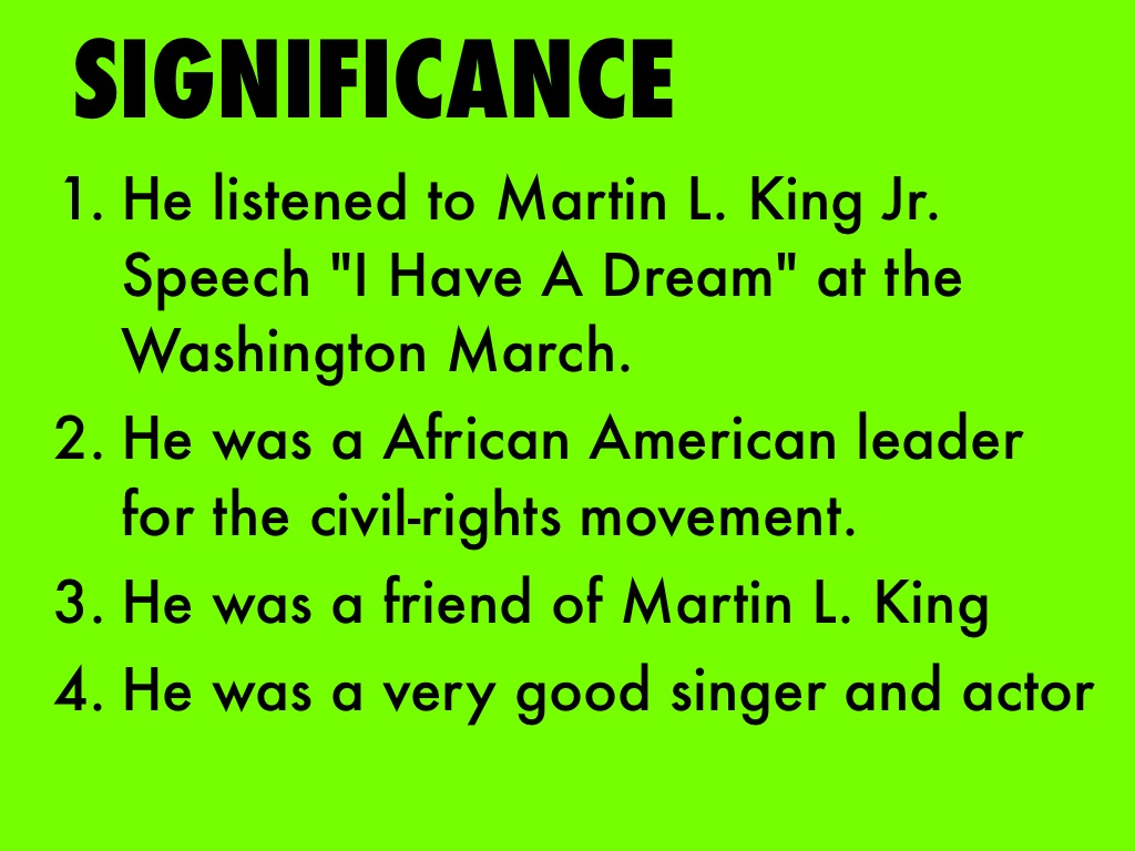 He listened to Martin L. King Jr. Speech "I Have A Dream" at the Washington March.