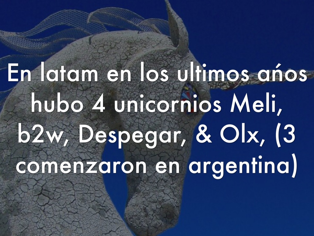 En latam en los ultimos ańos hubo 4 unicornios Meli, b2w, Despegar, & Olx, (3 comenzaron en argentina)
