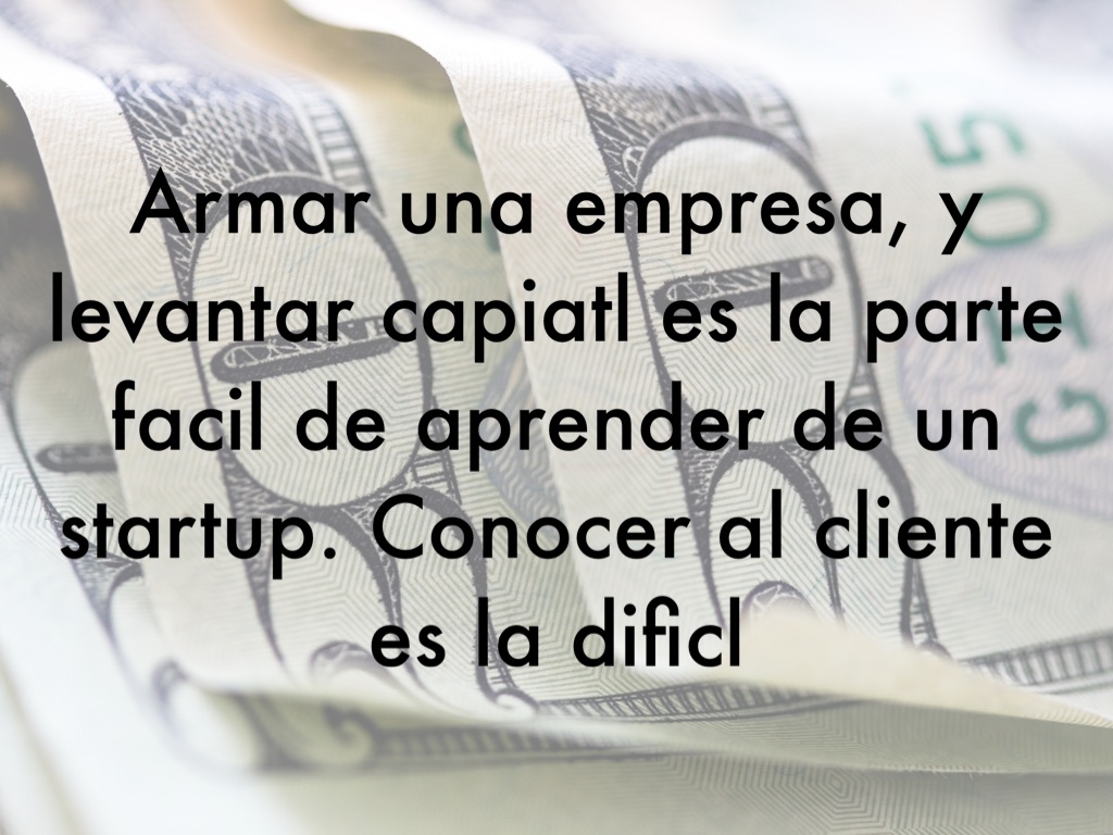 Armar una empresa, y levantar capiatl es la parte facil de aprender de un startup. Conocer al cliente es la dificl