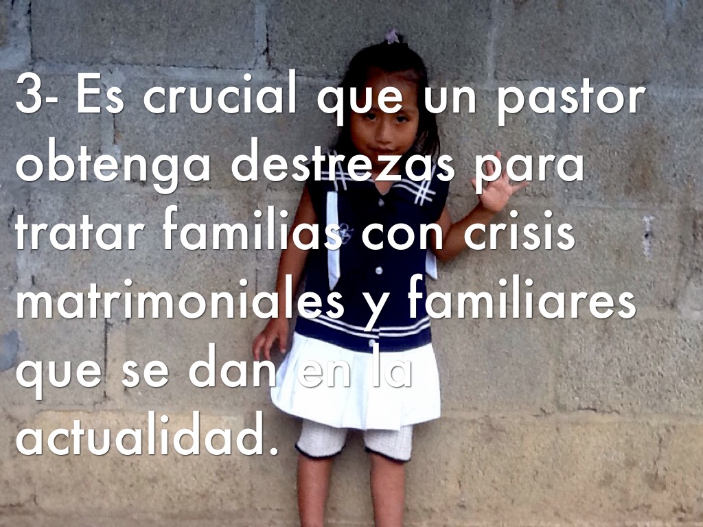 3- Es crucial que un pastor obtenga destrezas para tratar familias con crisis matrimoniales y familiares que se dan en la actualidad.