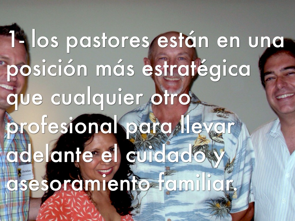1- los pastores están en una posición más estratégica que cualquier otro profesional para llevar adelante el cuidado y asesoramiento familiar.
