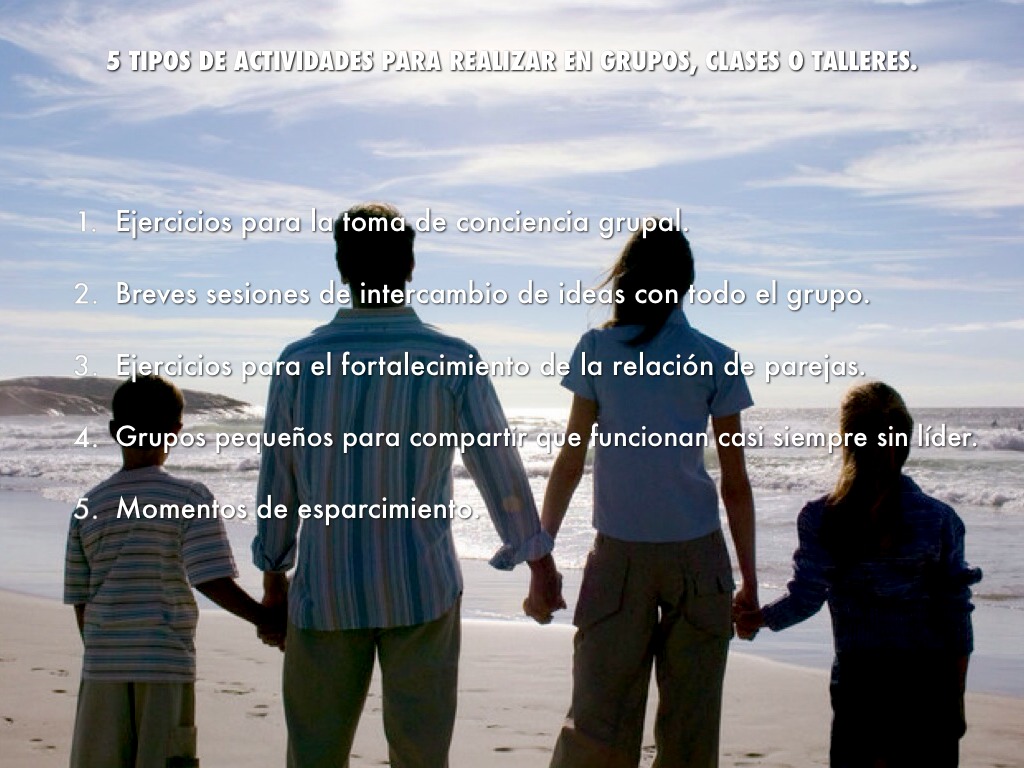 5 TIPOS DE ACTIVIDADES PARA REALIZAR EN GRUPOS, CLASES O TALLERES.