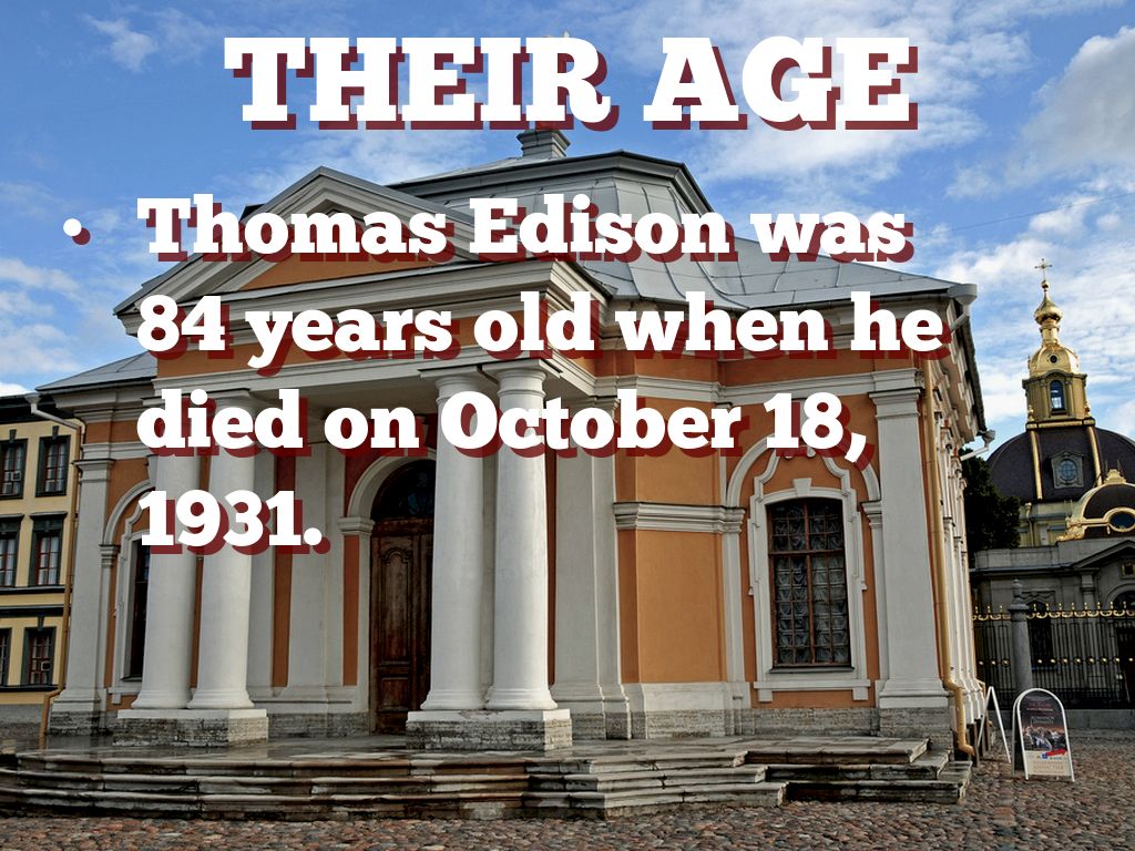 • Thomas Edison was 84 years old when he died on October 18, 1931.