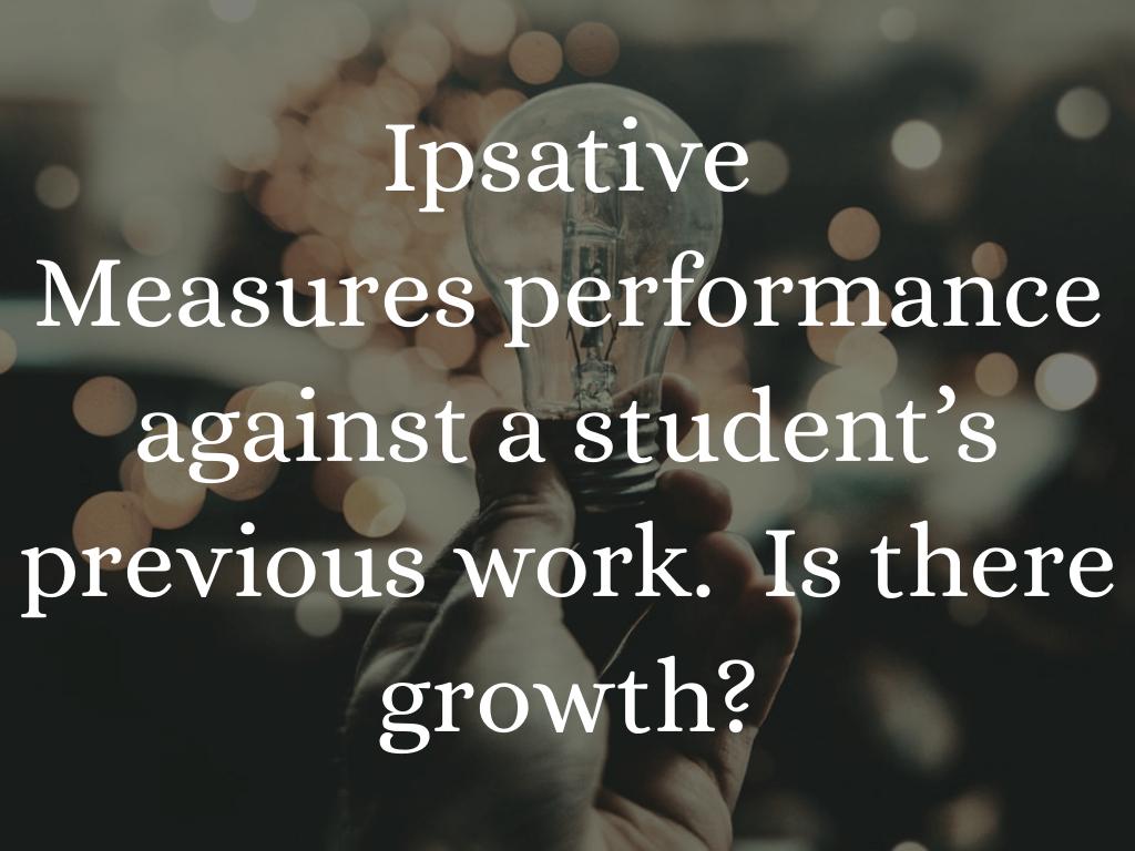 It measures work/performance against certain outcomes or goals. Often a rubric is a key element.