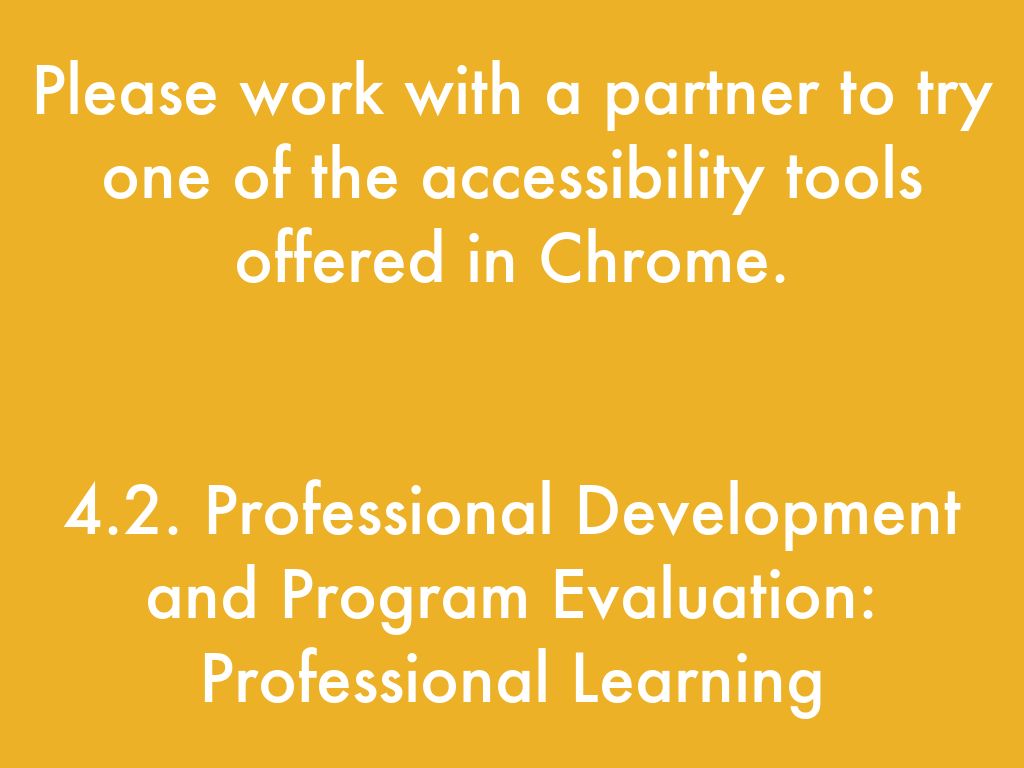 Please work with a partner to try one of the accessibility tools offered in Chrome.