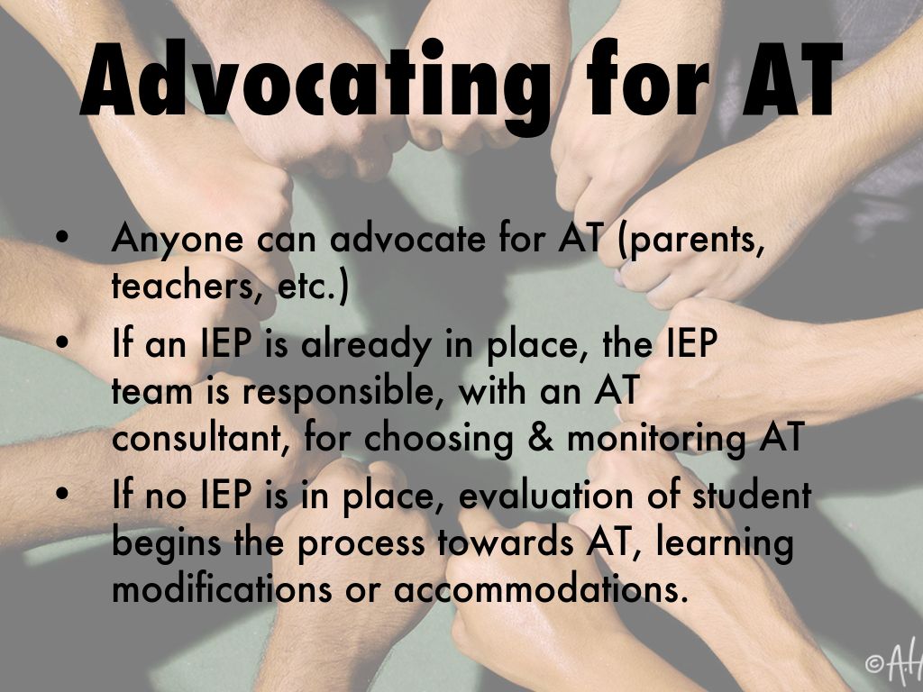 - Anyone can advocate for AT (parents, teachers, etc.)
