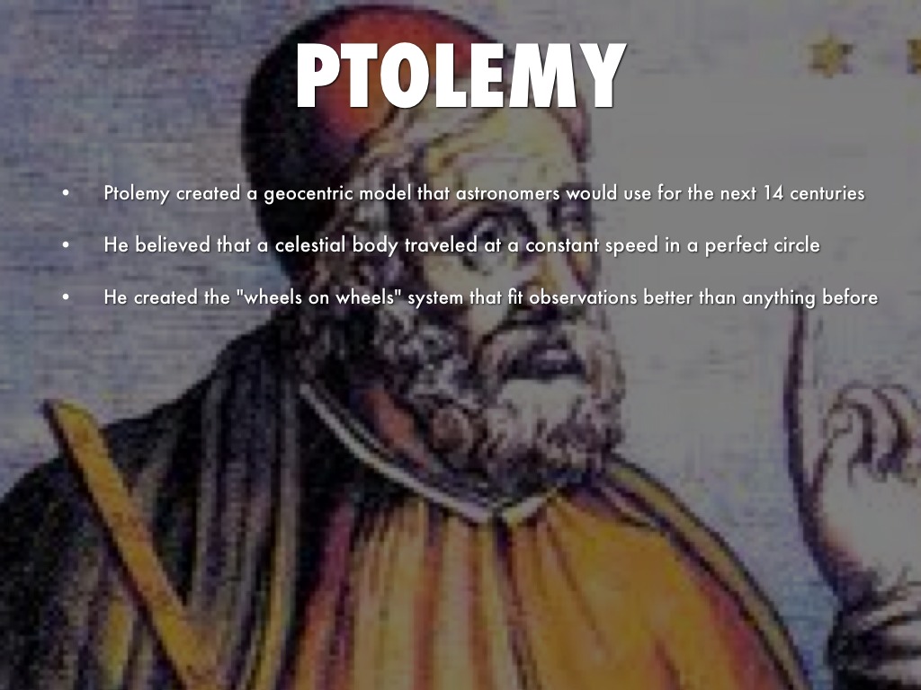 Ptolemy created a geocentric model that astronomers would use for the next 14 centuries