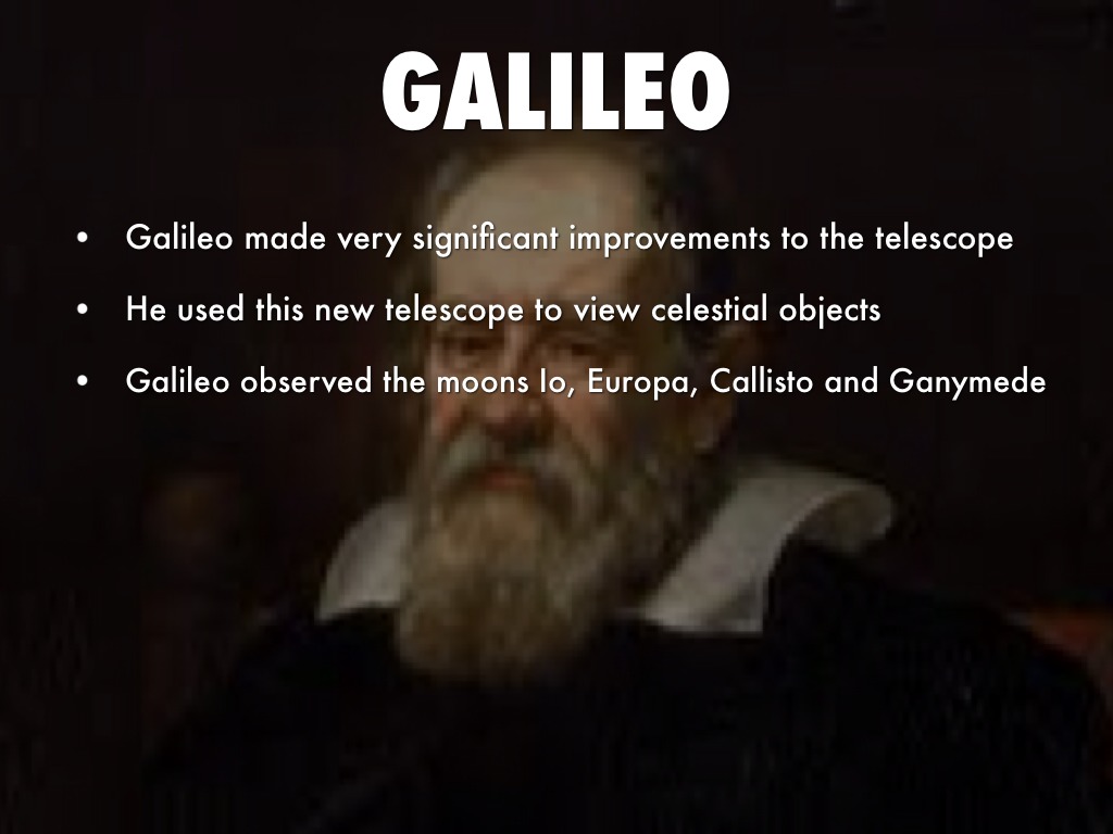 Galileo observed the moons Io, Europa, Callisto and Ganymede