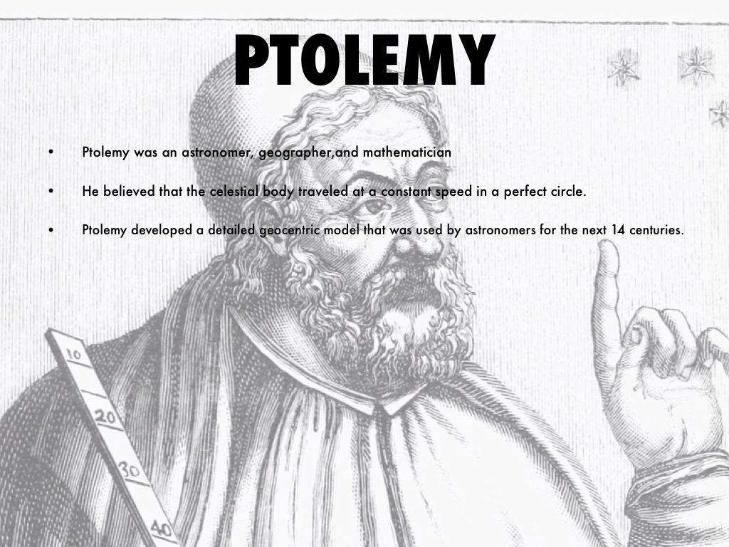 His model placed the moon, sun, planted, and stars on a series of circles that surrounded earth.