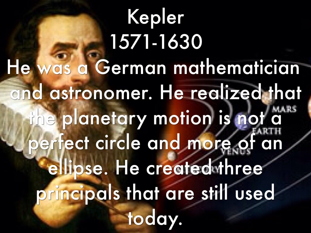 He was a German mathematician and astronomer. He realized that the planetary motion is not a perfect circle and more of an ellipse. He created three principals that are still used today.