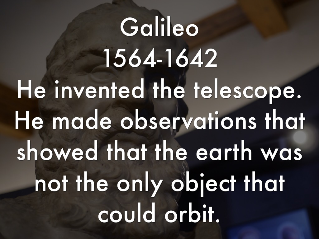 He invented the telescope. He made observations that showed that the earth was not the only object that could orbit.