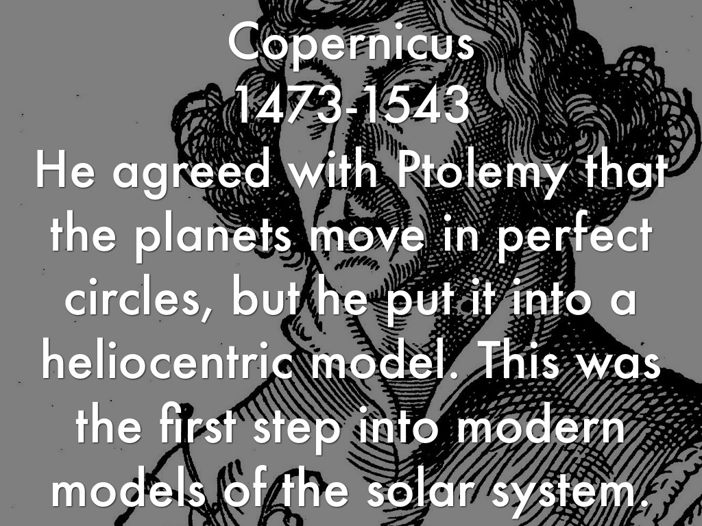 He agreed with Ptolemy that the planets move in perfect circles, but he put it into a heliocentric model. This was the first step into modern models of the solar system.