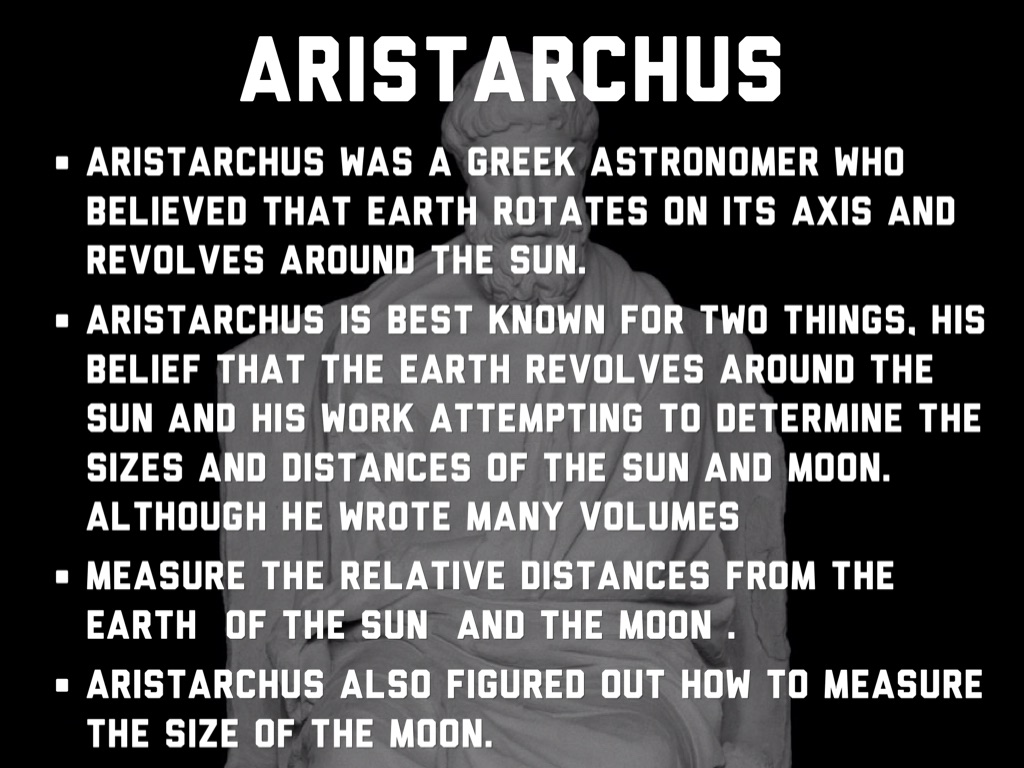 • Aristarchus was a Greek astronomer who believed that Earth rotates on its axis and revolves around the Sun.