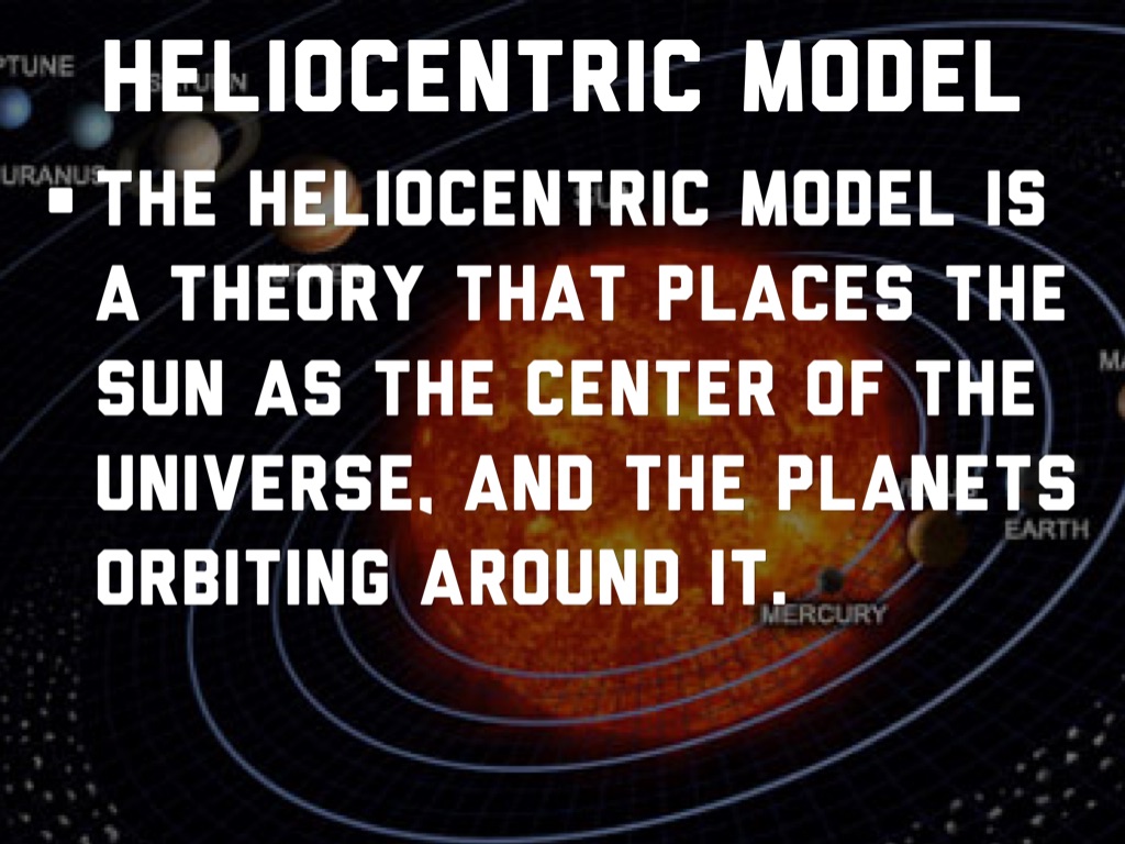 • The heliocentric model is a theory that places the Sun as the center of the universe, and the planets orbiting around it.