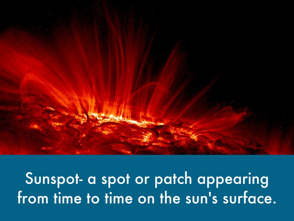 Sunspot- a spot or patch appearing from time to time on the sun's surface.