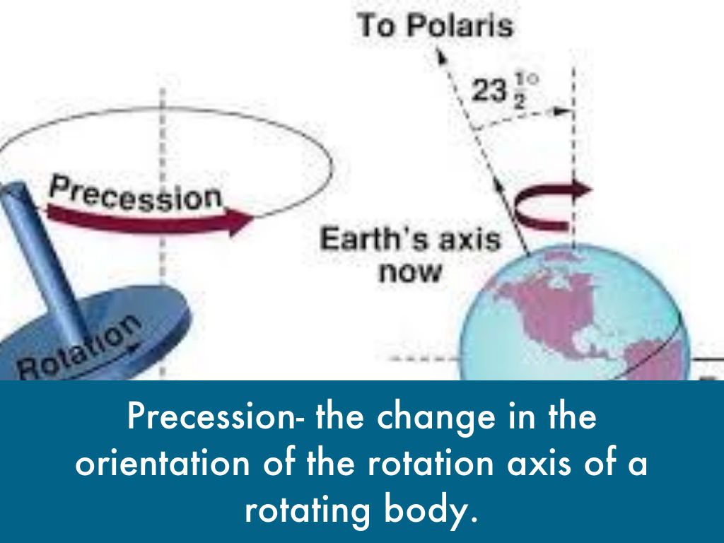 Precession- the change in the orientation of the rotation axis of a rotating body.