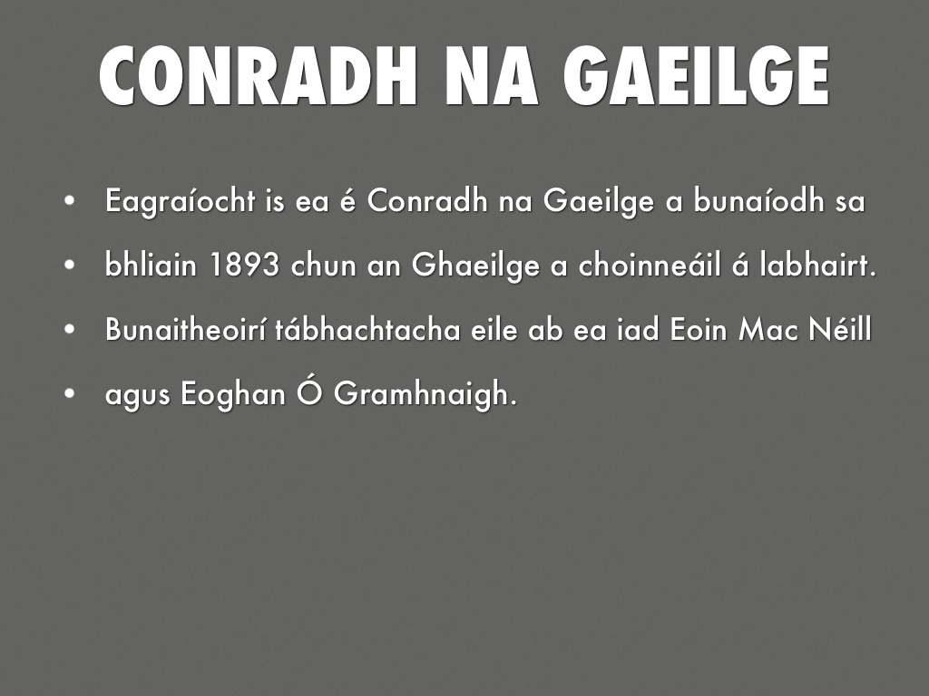 Eagraíocht is ea é Conradh na Gaeilge a bunaíodh sa