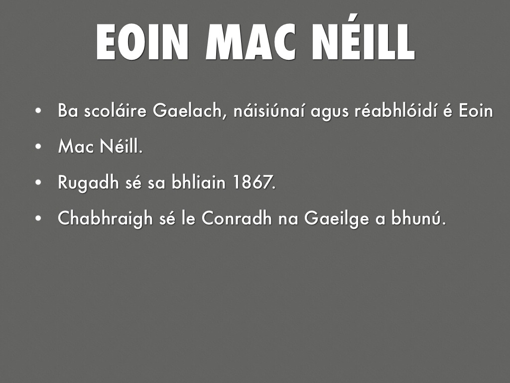 Bunaitheoirí tábhachtacha eile ab ea iad Eoin Mac Néill