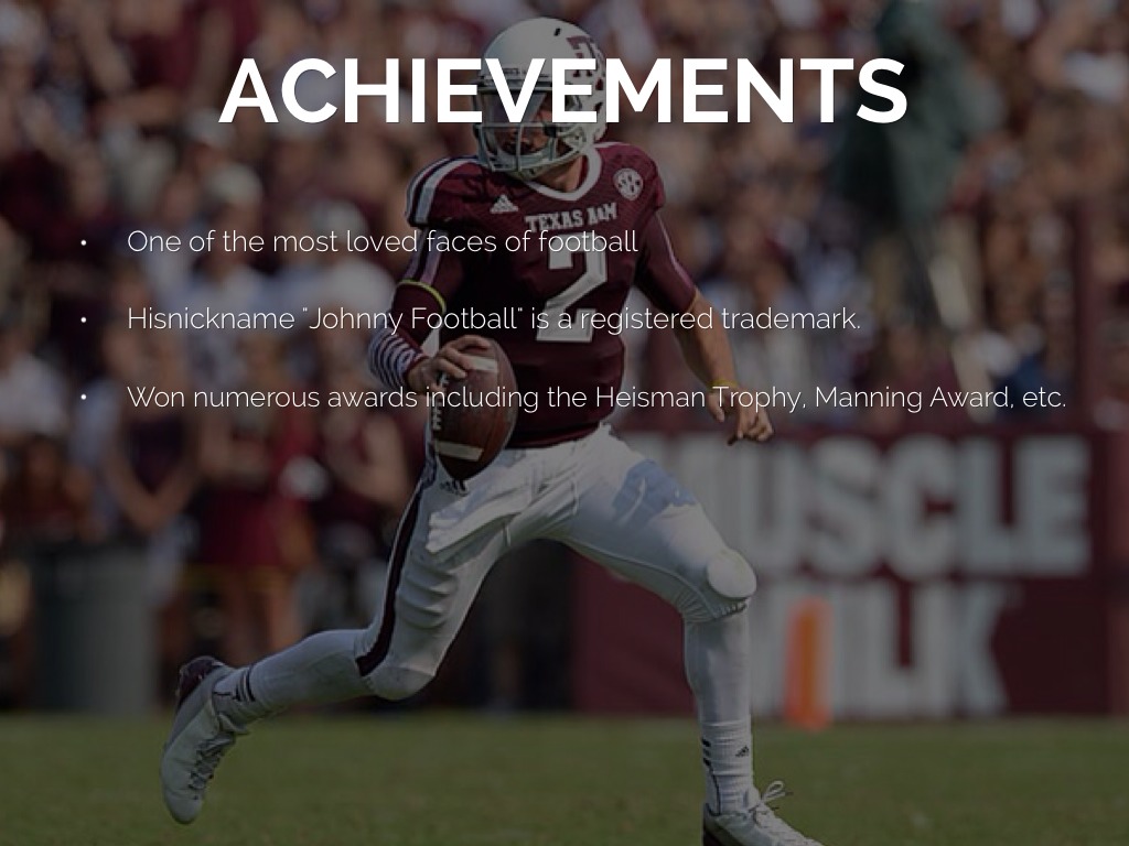 Won numerous awards including the Heisman Trophy, Manning Award, etc.