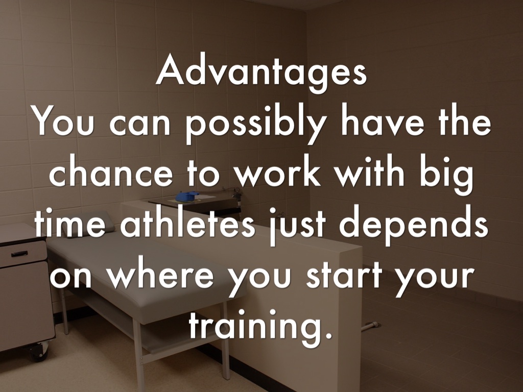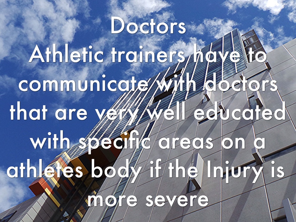 Doctors Athletic trainers have to communicate with doctors that are very well educated with specific areas on a athletes body if the Injury is more severe