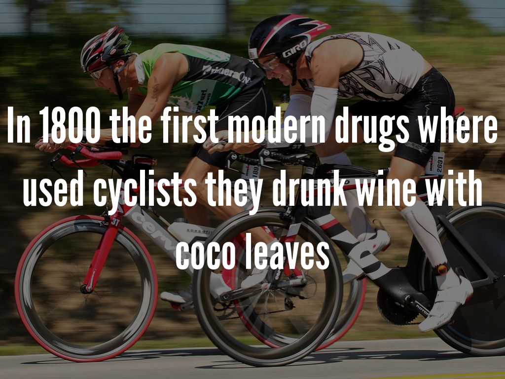 In 1800 the first modern drugs where used cyclists they drunk wine with coco leaves