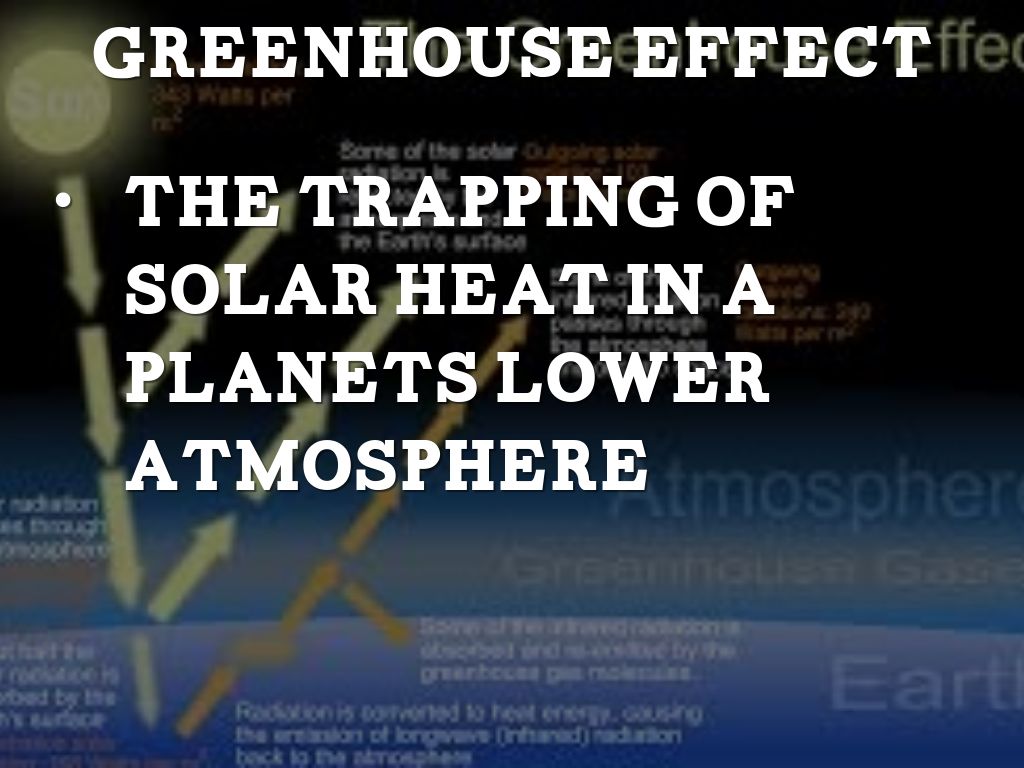 a gradual increase in the overall temperature of the earth's atmosphere generally attributed to the greenhouse effect caused by increased levels of carbon dioxide, chlorofluorocarbons, and other pollutants