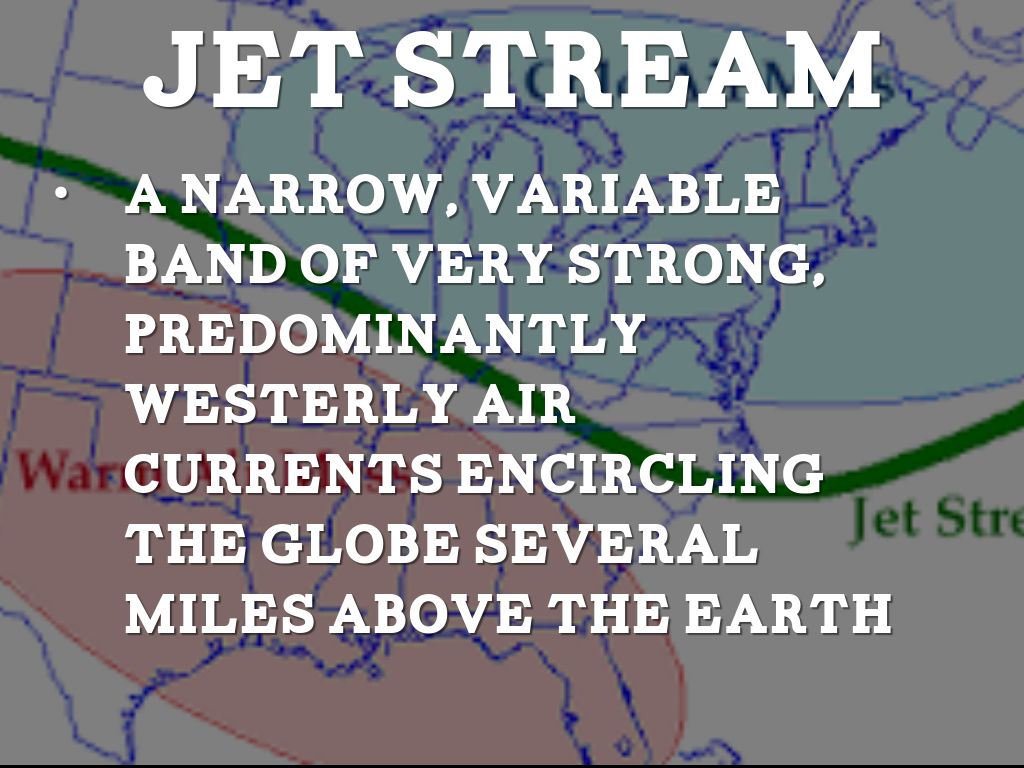 a narrow, variable band of very strong, predominantly westerly air currents encircling the globe several miles above the earth