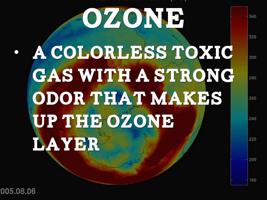 a colorless toxic gas with a strong odor that makes up the ozone layer