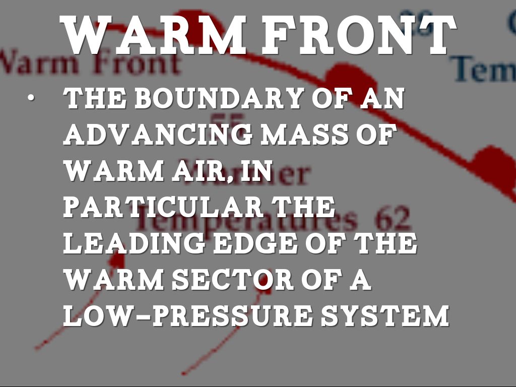 the boundary of an advancing mass of warm air, in particular the leading edge of the warm sector of a low-pressure system