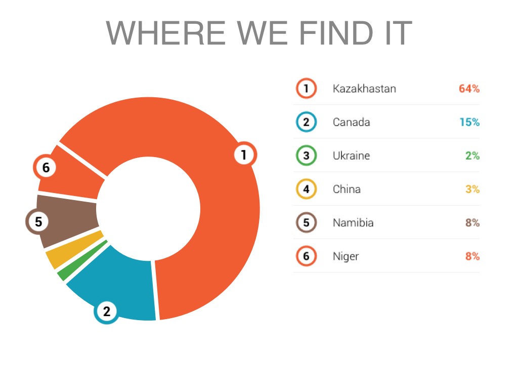• Kazakhstan,Canada and Australia are the top three producers.