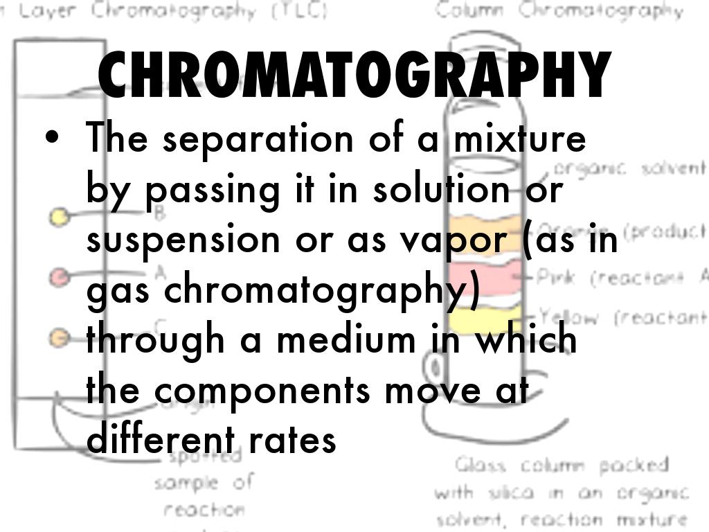 The separation of a mixture by passing it in solution or suspension or as vapor (as in gas chromatography) through a medium in which the components move at different rates