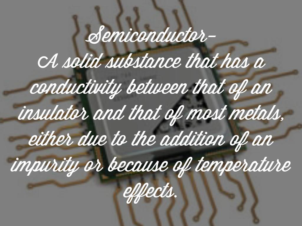 A solid substance that has a conductivity between that of an insulator and that of most metals, either due to the addition of an impurity or because of temperature effects.